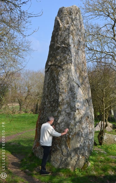 Comme le corps humain, la Terre est parcourue de courants énergétiques sur lesquels le géobiologue intervient comme le fait un acupuncteur. La technique de la pierre levée est connue depuis la nuit des temps. Nous ne sommes pas habitués à se représenter la nature électrique du vivant. Un menhir est une pierre polarisée qui placée au bon endroit, permet de dynamiser un territoire en fonctionnant comme une antenne connectant la Terre au Ciel, le tellurique au cosmique, c'est-à dire les ions positifs aux ions négatifs. La structure cristalline d'une roche comme le granit ou le quartz génère un effet piezo-électrique. Sur le plan vertical le menhir rentre alors en vibration en captant les rayonnements du sous-sol par capillarité énergétique.